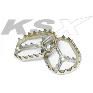 KSX Fussrasten Factory Line CNC gefräster Aluminium Grundkörper mit auswechselbaren Silikoneinlagen und Edelstahl Zahnkranz. Die Grundkörper, Silikoneinlagen sind in unterschiedlichen Farben lieferbar und können nach individuellen Wünschen bestellt werden. Die Fussrasten haben eine Breite von 57mm.